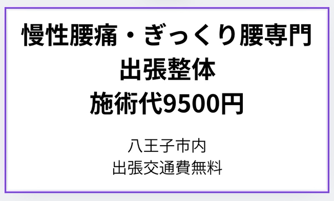 そんな時は、当院のぎっくり腰専門出張整体をご利用ください。