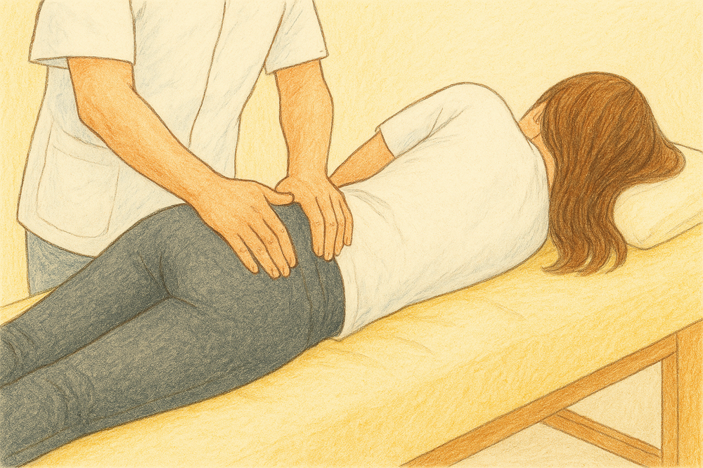 当院では、ぎっくり腰を繰り返さないために、痛みをやわらげるだけでなく骨盤・仙腸関節の調整を中心とした根本改善をおこないます。